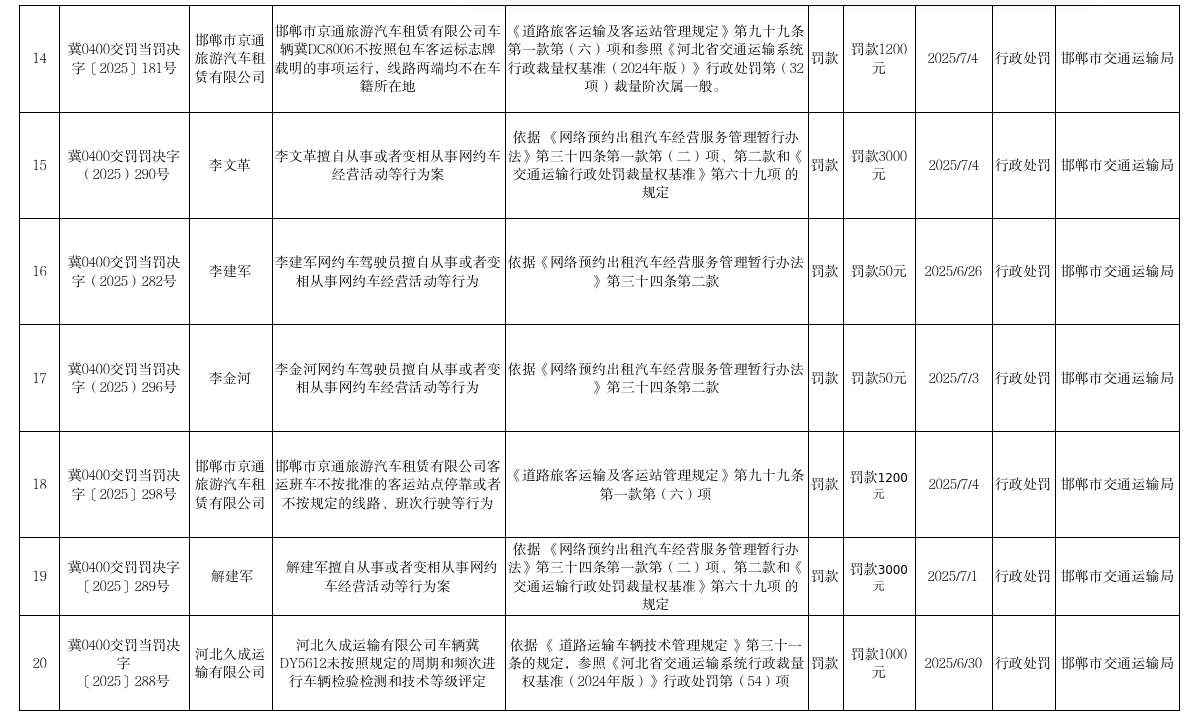 邯郸市交通运输局2025年行政处罚17