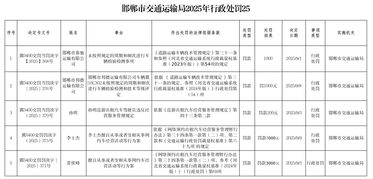 邯郸市交通运输局2025年行政处罚25